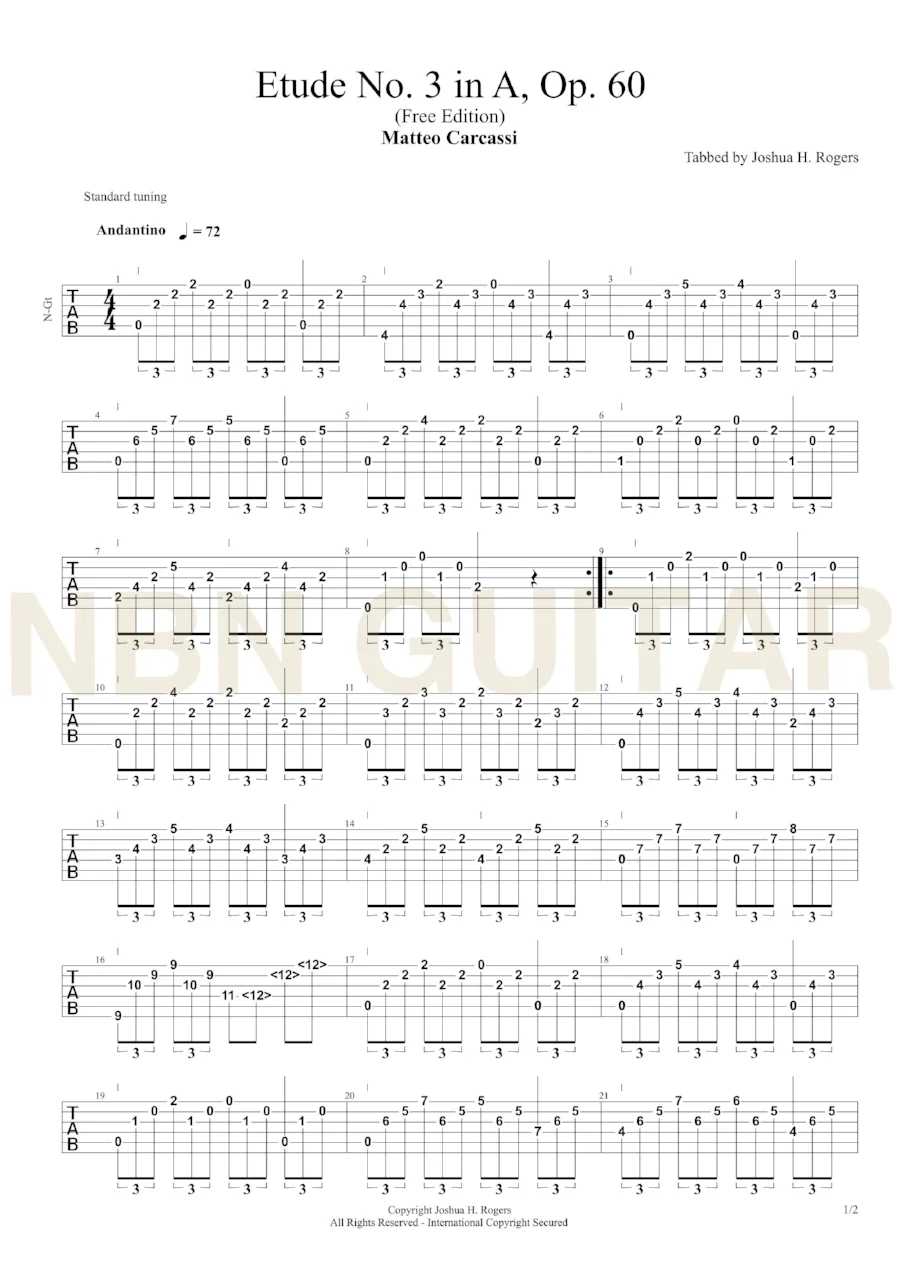 Etude No. 3 in A major, Op.60 - Free Classical Guitar Tabs