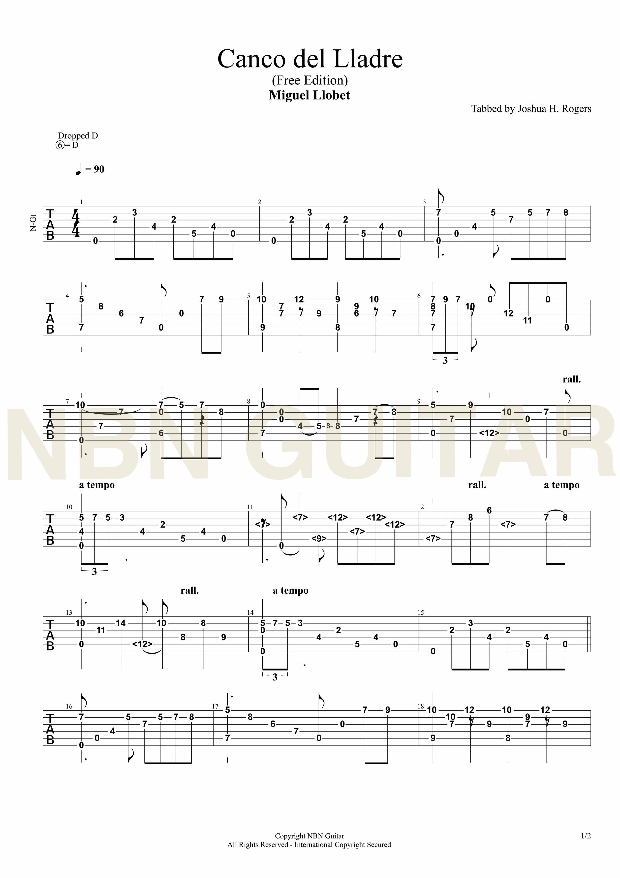 Canco del Lladre - Free Classical Guitar Tabs