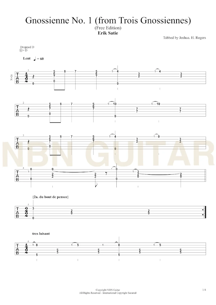 Gnossienne No. 1 - Free Classical Guitar Tabs
