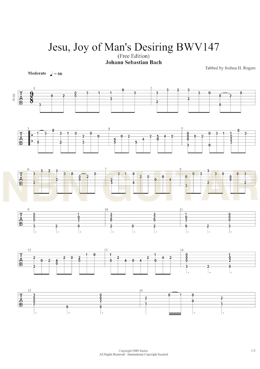 Jesu, Joy of Man's Desiring - Free Classical Guitar Tabs