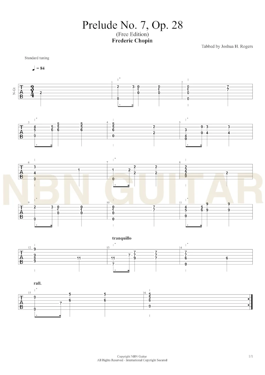 Prelude No. 7, Op. 28 - Free Classical Guitar Tabs
