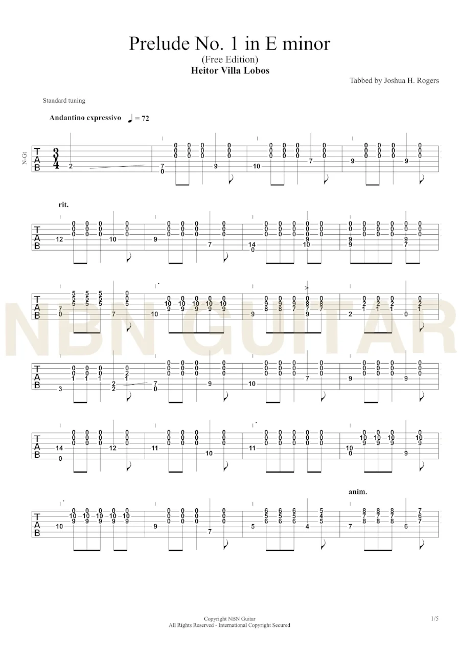 Prelude No. 1 in E minor - Free Classical Guitar Tabs