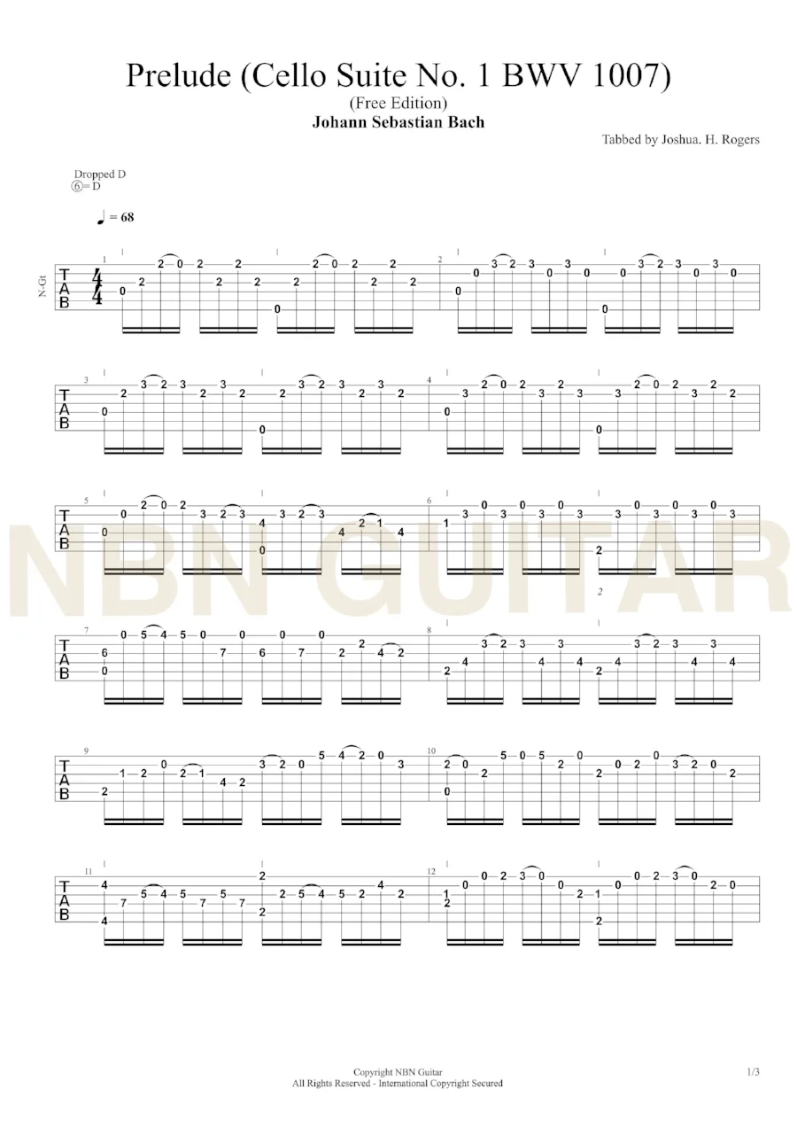 Prelude BWV1007 - Free Classical Guitar Tabs