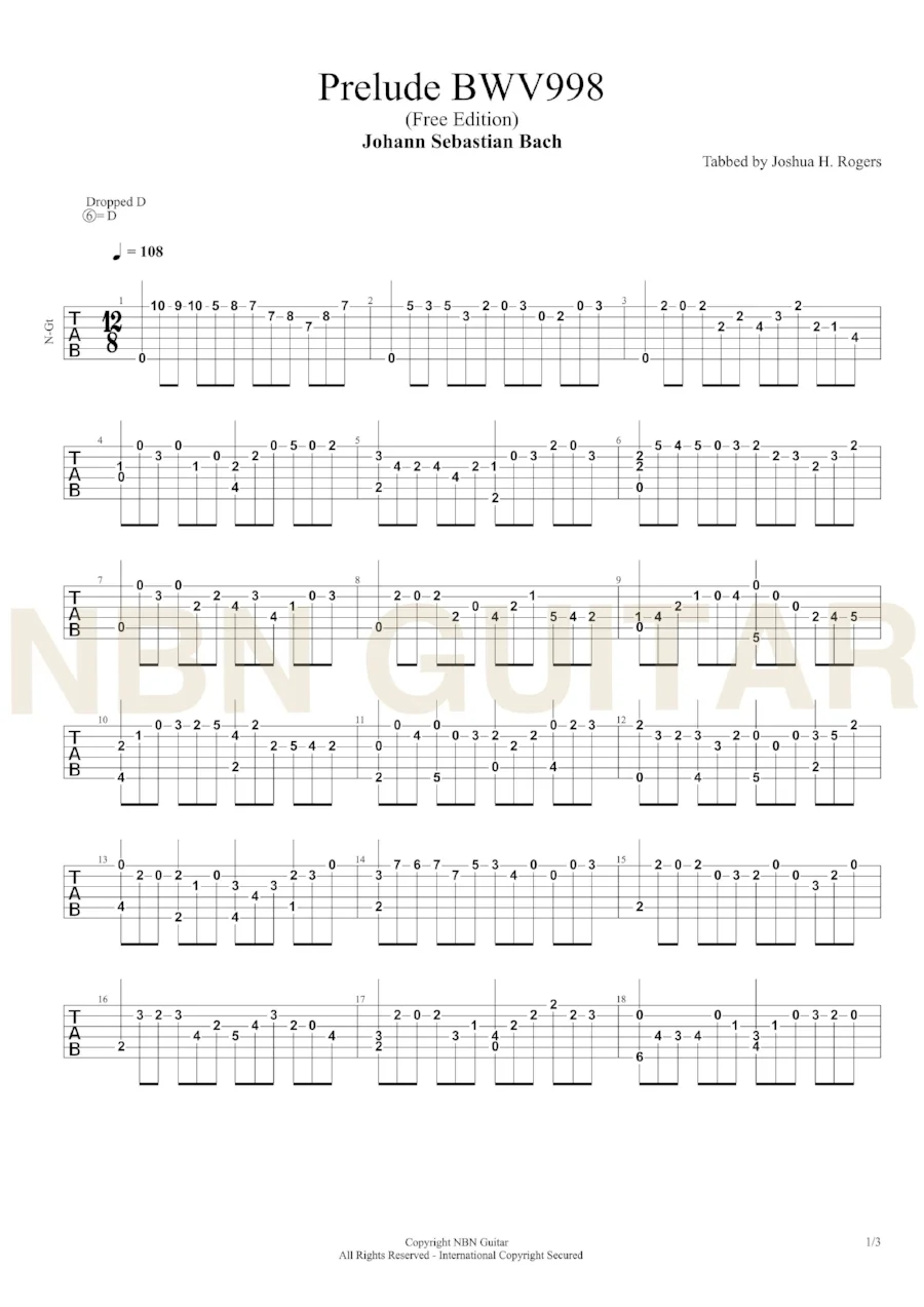 Prelude BWV 998 - Free Classical Guitar Tabs