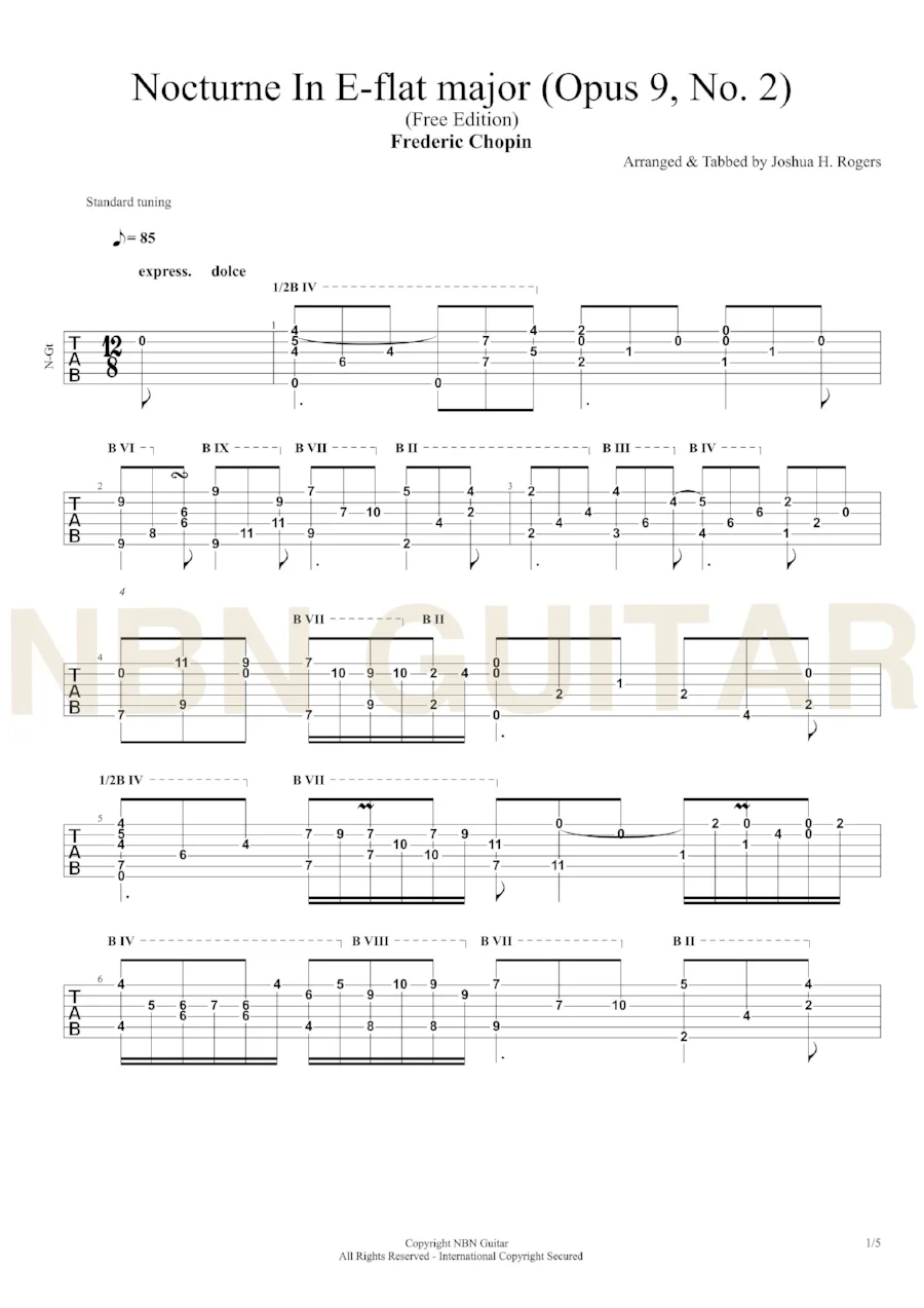 Nocturne in E-flat major - Free Classical Guitar Tabs