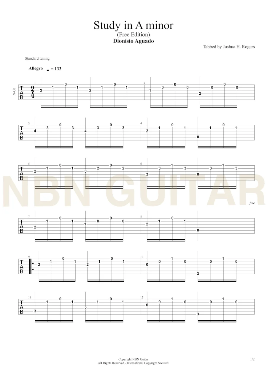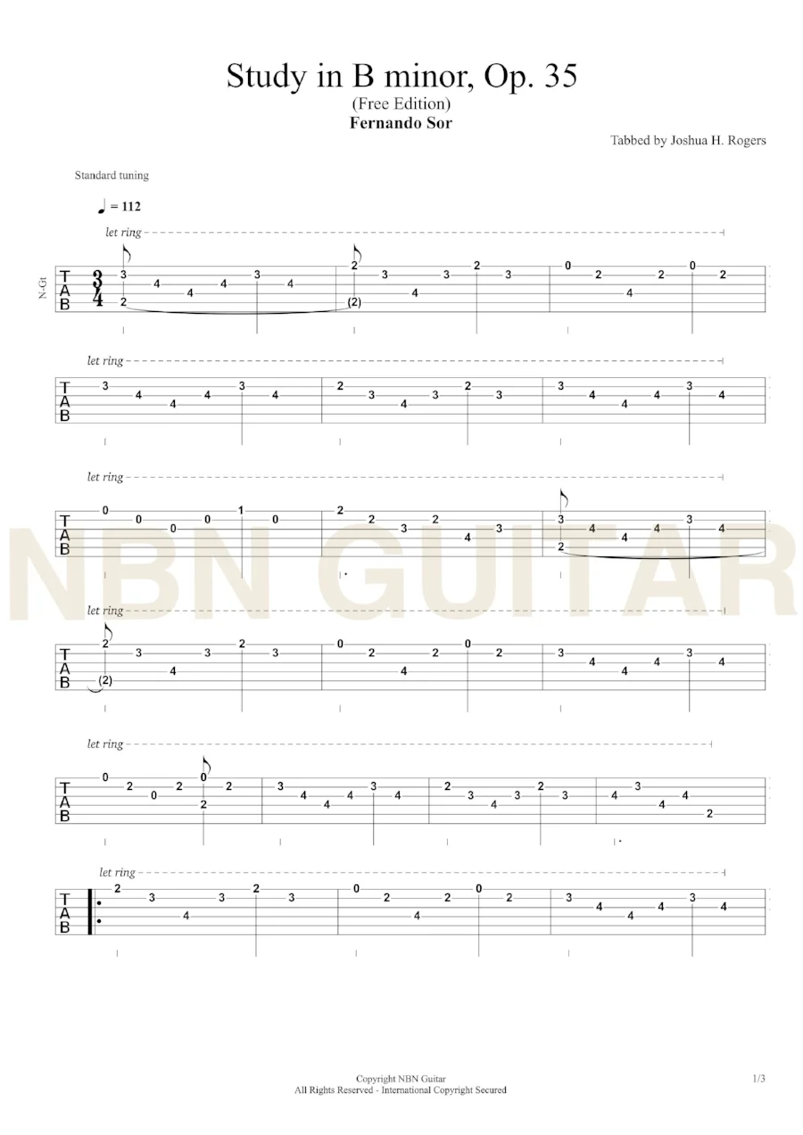 Study in B minor, Op. 35 - Free Classical Guitar Tabs