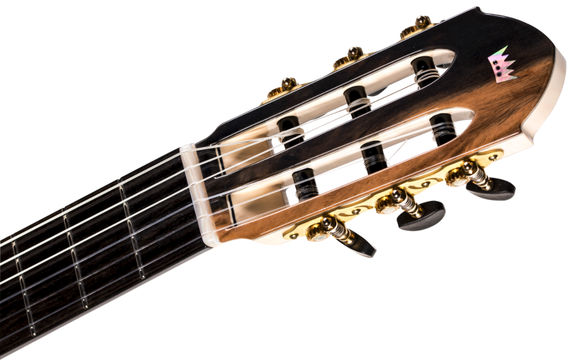 Polish luthier extraordinaire Rafał Turkowiak is no stranger to building and designing some of the most stunning and ground-breaking classical guitars in the world. After deconstructing an ancient guitar in 1983 Rafal developed his passion for playing and building guitars right up until the present day. At 51 Turkiowak has built a respectable reputation with almost 35 years of luthier experience reinforcing his skill. The exquisite guitar featured here is known as 'Black Diamond' because of the black diamonds embedded in the headstock - amazing!