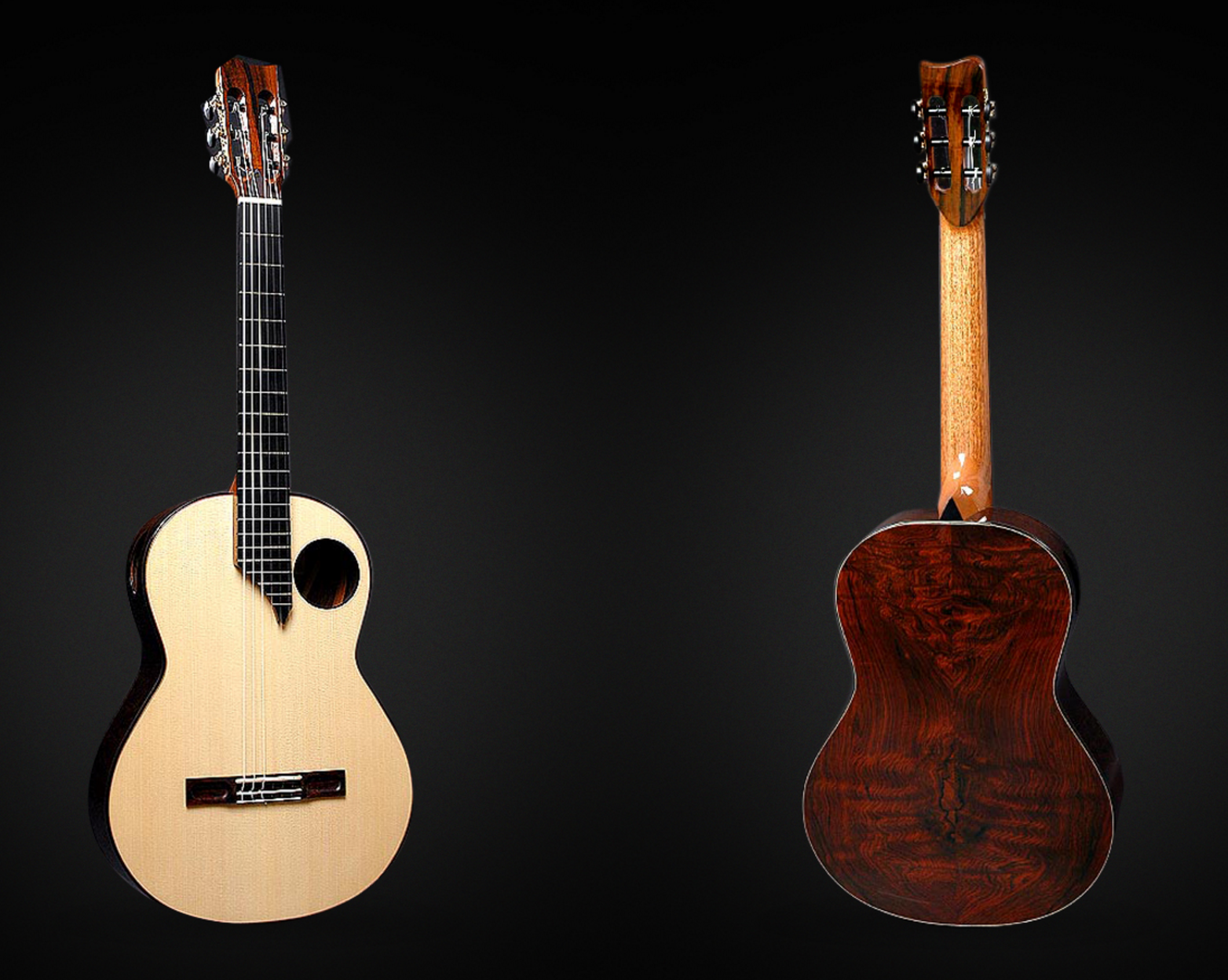 Be sure to check out my articles on Modern Classical Guitar Design to learn more about elevated fretboards, soundports, lattice bracing etc etc: