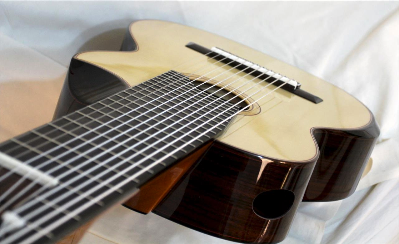 It was Ibanez that took up the challenge of designing a 7-string guitar that could meet Mr. Vai's demands. It would seem that the desire to have an extended range on guitar crossed over into the classical scene too. You may be thinking to yourself that Narcisco Yepes had already been playing an 11 string for many years and that is true however his instrument was extremely rare and those guitars weren't truly adopted into mainstream classical guitar.